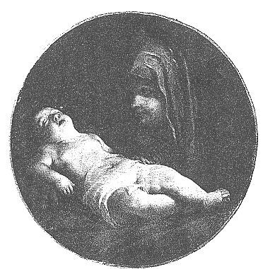 Si dovrebbe trattare di una rielaborazione di scuola del motivo del braccio del Bambino, da un dipinto di Guido andato perduto di cui si conosce l'incisione di J.Boydell (1769) (vicino alla Madonna della galleria Doria Pamphilj)