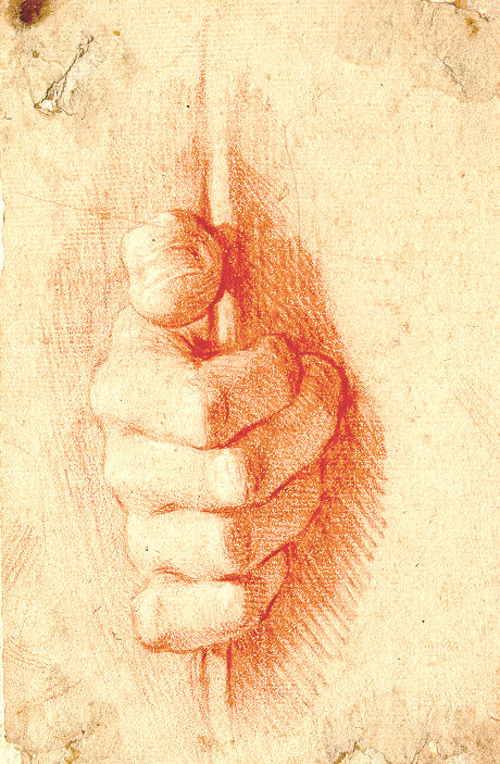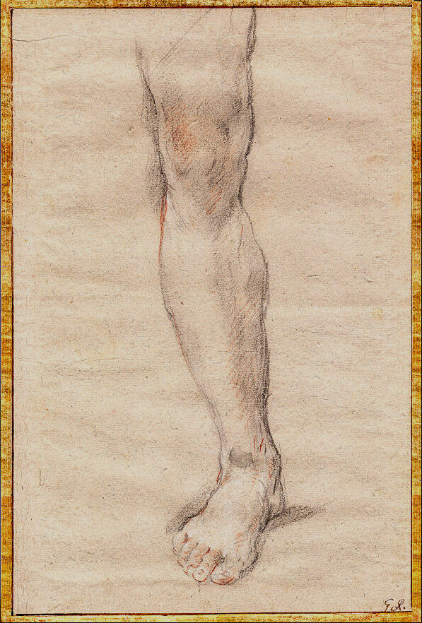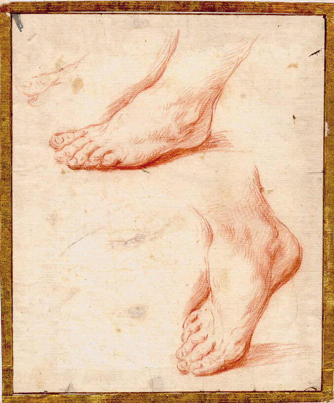 Materiale tecnica: carta grigia, listata d'oro; matita nera e sanguigna, con tracce di gessetto bianco; controfondato