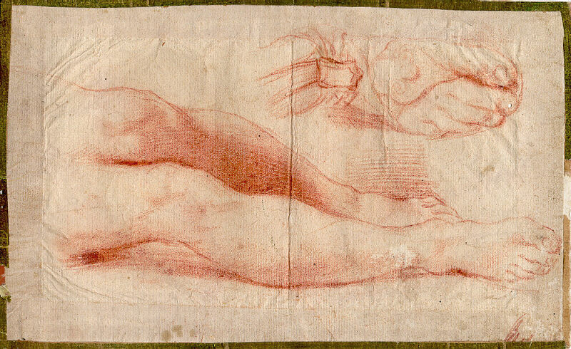 Gambe e piede con sandalo - recto; Gambe e braccio - verso