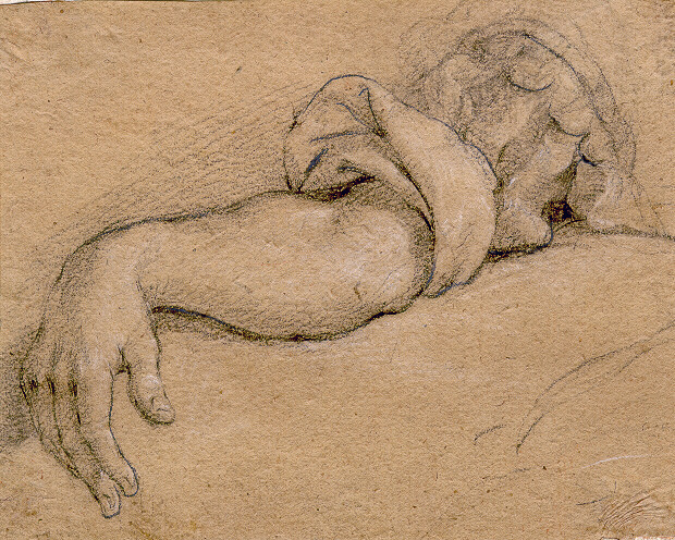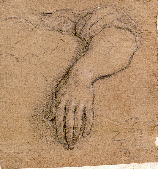 Materiale tecnica: carta marroncina; matita nera con tracce di gessetto bianco; controfondato