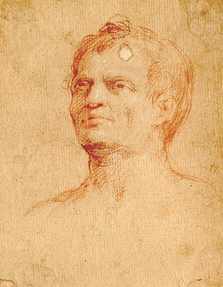 Materiale tecnica: carta bianca; sanguigna; controfondato